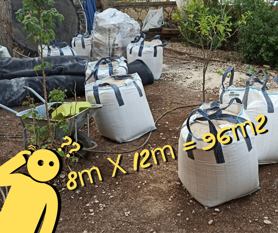 כלומר, לגינה של 50 מ”ר נצטרך כ- 5 בלות בממוצע. חשוב לציין כי מדובר בכמות המינימלית הנדרשת וכי ניתן למלא שכבה עבה יותר במקרה הצורך.